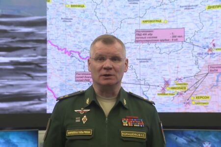 Кроме того, уничтожено семь складов с боеприпасами и топливом в районах населенных пунктов Резниковка, Острое Донецкой Народной Республики, Галициново Николаевской области и города Николаев. В районе населенного пункта Артёмовск Донецкой Народной Республики ударами российской авиации уничтожены два подразделения ВСУ, численностью до роты, две гаубицы М777 производства США, и в районе города Николаев – комплекс радиоэлектронной борьбы «Буковель».